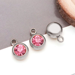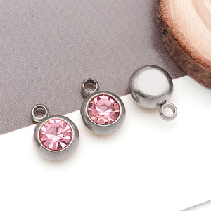 6x8.5x4mm水平横孔1.5mm深粉色钢色不锈钢十二生辰石星辰石-0.5g-T2956