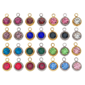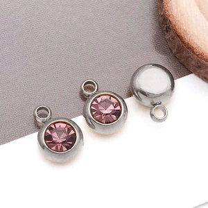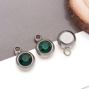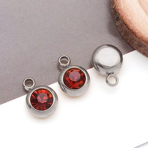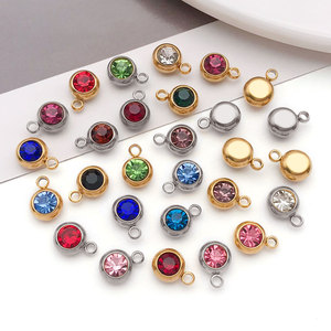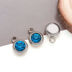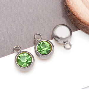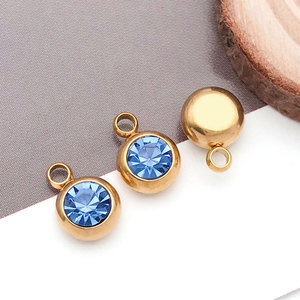 不锈钢水平横孔十二生辰石吊坠挂件星辰石饰品配件项链宝石配饰
