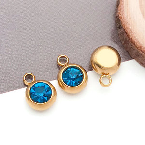 6x8.5x4mm水平横孔1.5mm深湖蓝天蓝色真空电镀金色不锈钢十二生辰石星辰石0.5gT2941