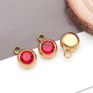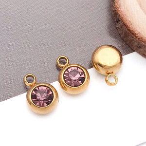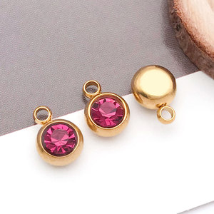 6x8.5x4mm水平横孔1.5mm玫红色真空电镀金色不锈钢十二生辰石星辰石-0.5g-T2931