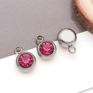 6x8.5x4mm水平横孔1.5mm玫红色钢色不锈钢十二生辰石星辰石-0.5g-T2945