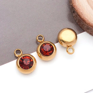6x8.5x4mm水平横孔1.5mm大红色真空电镀金色不锈钢十二生辰石星辰石-0.5g-T2936