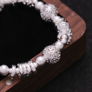 2025年新款国风银饰镂空铜钱玲珑串珠手链把古典雅致戴在腕间