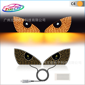 车载恶魔之眼LED车贴前后玻璃表情灯USB通电屏幕灯
