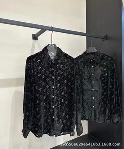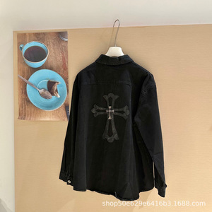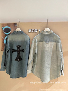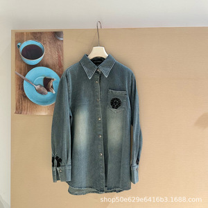 25早春新款ch时髦胸前口袋刺绣图案后背logo设计水洗做旧牛仔衬衫