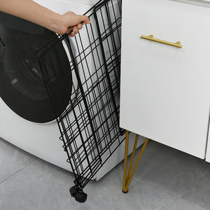 跨境卫生间洗衣篮家用夹缝折叠脏衣篮浴室铁艺多功能带轮脏衣篓