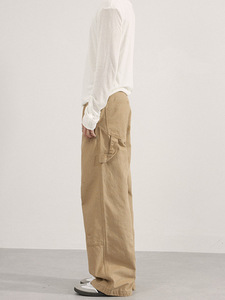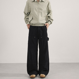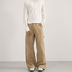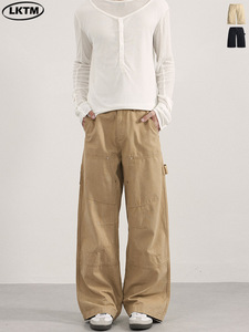 LKTM男装 复古简约水洗珠帆布伐木工装裤男女潮牌解构直筒休闲裤