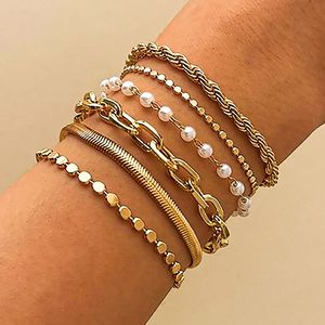 亚马逊跨境简约百搭几何细链手饰女蛇骨链盒子链女士手链套装批发