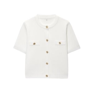 跨境欧美女装针织开衫白色新款短袖针织衫上衣女亚马逊外贸批发