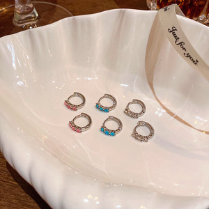 甜美气质彩色锆石小耳扣耳钉女学上养耳洞套装闪钻耳环网红耳饰品