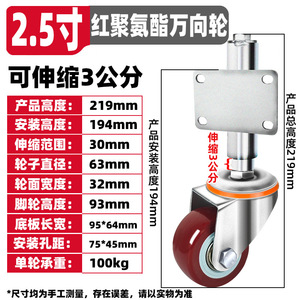 2.5寸红聚氨酯万向轮(3公分)
