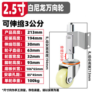 2.5寸白尼龙万向轮(3公分)