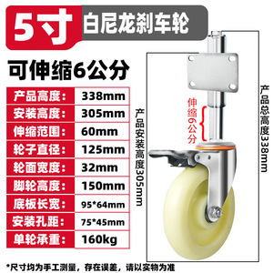 5寸白尼龙万向带刹车轮(3公分)