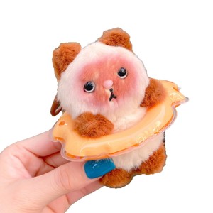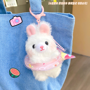 创意游泳圈萌宠动物毛绒公仔钥匙扣可爱兔子小狗玩偶背包挂饰货源