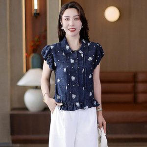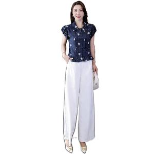 时尚套装女2025夏季洋气减龄显瘦印花短袖衬衫阔腿裤休闲两件套潮