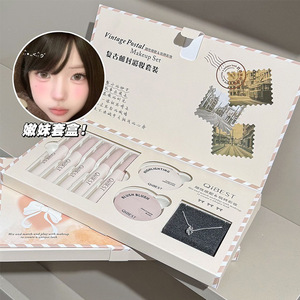 QIBEST复古邮封彩妆套装 雾面唇泥腮红高光项链可爱套装跨境批发