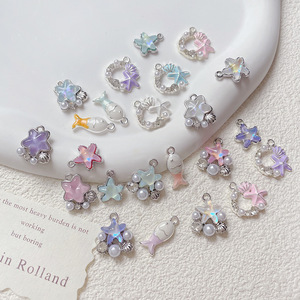 梦幻ins风海洋系列镭射细闪贝壳海星小鱼吊坠DIY串饰吊坠串珠