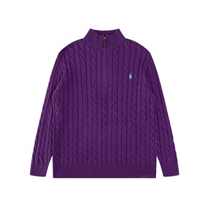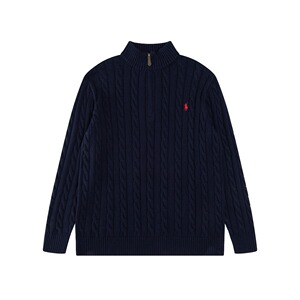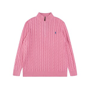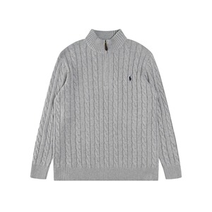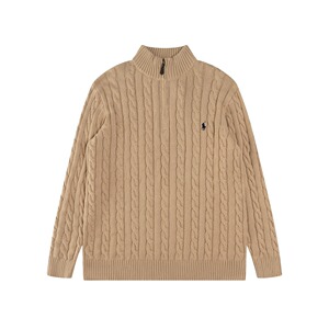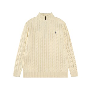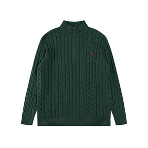 跨境外贸拉夫长袖衫秋冬R*Lpolo纯色高领套头半拉链针织绞花毛衣