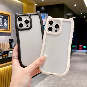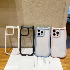 适用iPhone16promax手机壳猫耳朵华为/苹果14透明亚克力防摔纯色