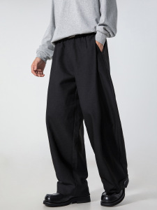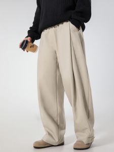 立体打褶休闲裤男秋季款垂感宽松西裤脚口可调复古宽松潮牌长裤子