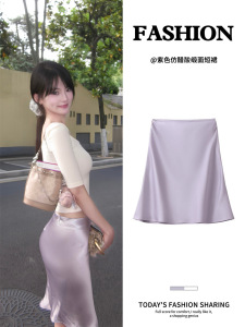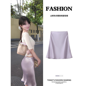 紫色醋酸缎面半裙女夏冷淡系半身裙夏天巨好看多巴胺裙子包臀短裙