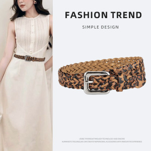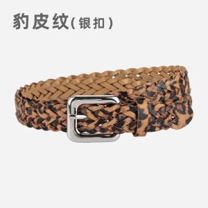 韩版欧美个性豹皮纹编织皮带女生针扣免打孔搭牛仔裤带时尚腰带女