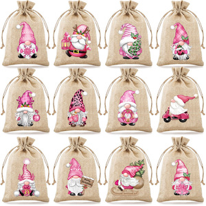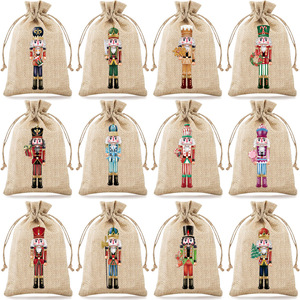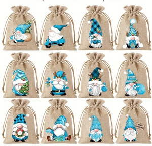 厂家新款圣诞节麻布束口袋万圣节抽绳礼物袋现货圣诞节糖果包装袋