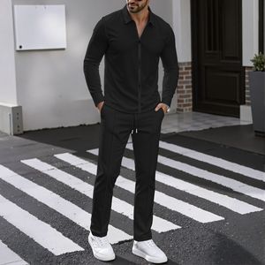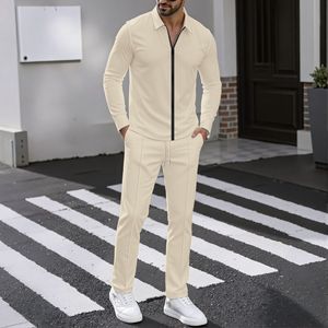 亚马逊2025跨境爆款户外百搭纯色华夫格拉链衫长袖长裤套装两件套