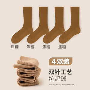咖色袜子女秋款棉袜双针美拉德堆堆袜棕色长袜透气抗起球中筒袜女