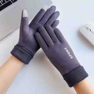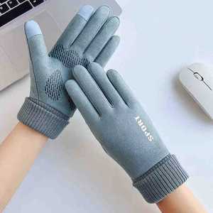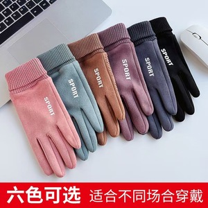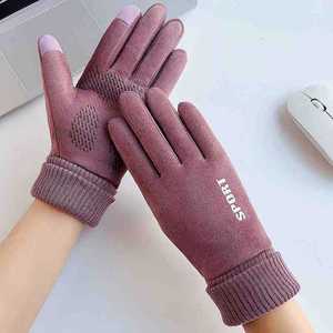 秋冬保暖手套男女情侣款防风加绒骑行防滑触屏麂皮绒保暖手套批发