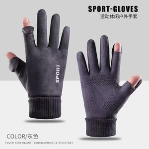 灰色麂皮绒半指男