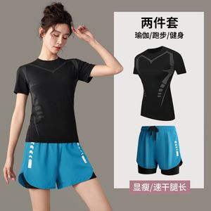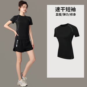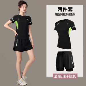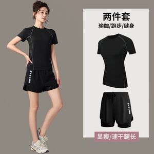 跑步运动套装女夏季速干冰丝t恤瑜伽服大码短袖晨跑健身衣服高弹