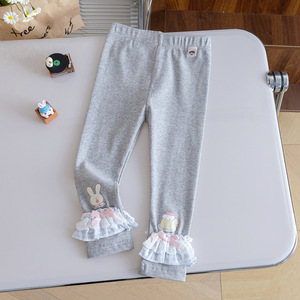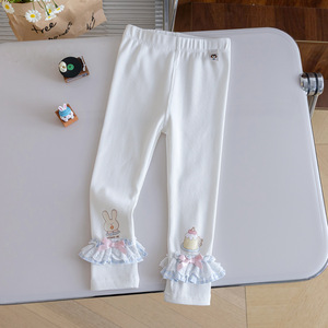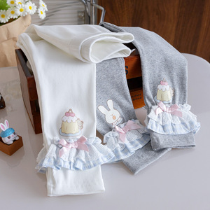 女童可爱打底裤25春秋新款百搭卡通裤子女宝宝时尚蕾丝蝴蝶结长裤