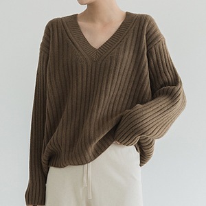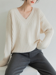 软糯慵懒风V领套头针织衫女秋冬季宽松简约咖色毛衣上衣外穿2025
