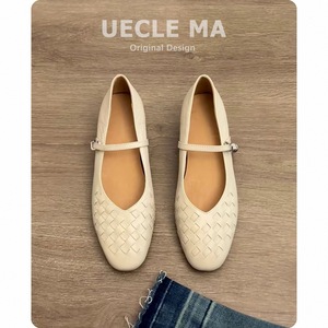 小羊皮~法式复古真皮编织内增高玛丽珍鞋女春季一字扣带浅口单鞋