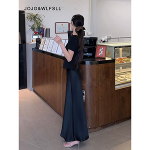现货Gourcuff女装25夏季新款法式千金镶钻醋酸小香风气质黑色小衫