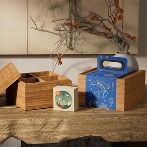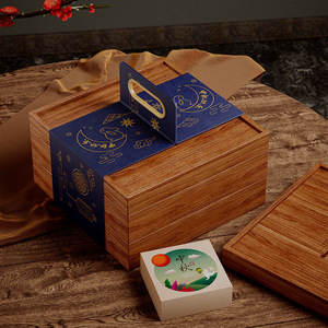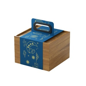 中式木制中秋节包装盒手提实木双层月饼礼盒复古伴手礼木质月饼盒