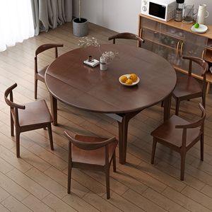 1米5 胡桃色方变圆 单桌+6牛角椅