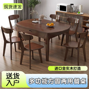 小红书北欧全实木餐桌椅组合伸缩可折叠餐桌小户型家用两用变圆桌