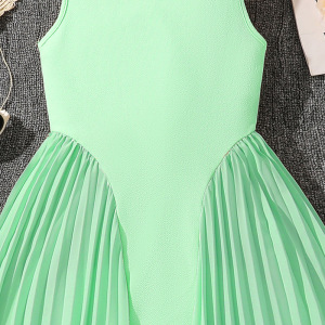 跨境女童装25夏季新款外贸欧美风气质百褶拼接收腰无袖礼服连衣裙
