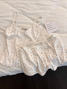 带胸垫甜美卡通小熊印花吊带睡衣女2025新款纯欲风短裤家居服套装