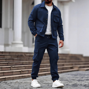 跨境亚马逊秋季美式重磅男士复古工装夹克多口袋长裤潮流硬汉套装