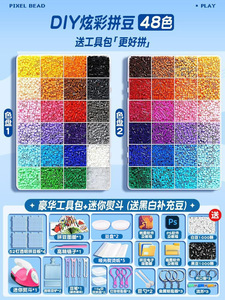 48色拼豆豪华套装【高颜值豆笔+豆铲+赠送黑白豆2000颗】