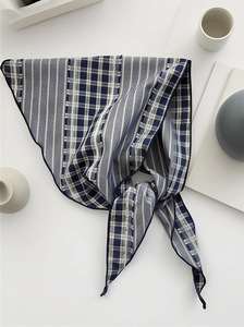 头巾夏女田园春夏新款森系文艺拼色格子三角巾围脖女领巾丝巾批发