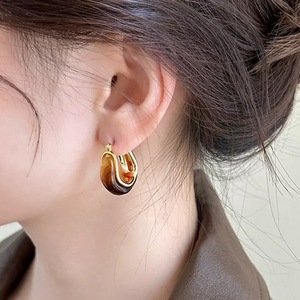 美拉德系法式中古风琥珀色耳环女新款小众高级感耳扣百搭个性耳饰