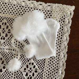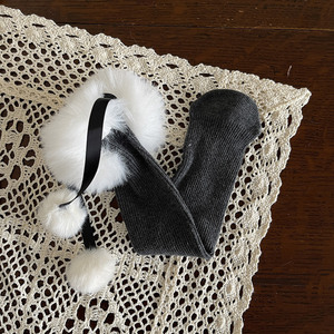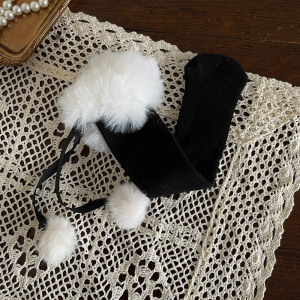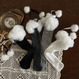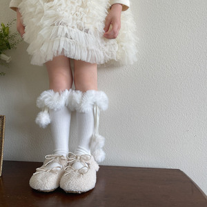 hotmoon秋冬新品暖糯毛绒花边球蝴蝶结可爱公主中筒小腿堆堆袜女