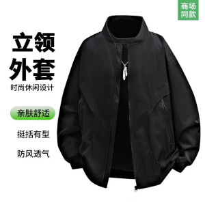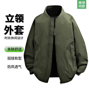 跨境代发美式立领夹克外套男春秋季新款冲锋衣防风休闲夹克外套男