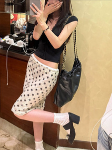 SUNONEOE 金线编织亮片波点半身裙女夏季包臀a字中长裙显瘦裙子