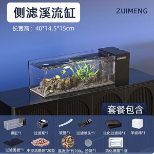2025新款溪流缸鱼缸制氧一体式客厅招财超白侧滤造景全套金鱼缸
