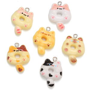 DIY树脂配件甜甜圈可爱猫咪吊坠 手链钥匙扣项链装饰挂件W456